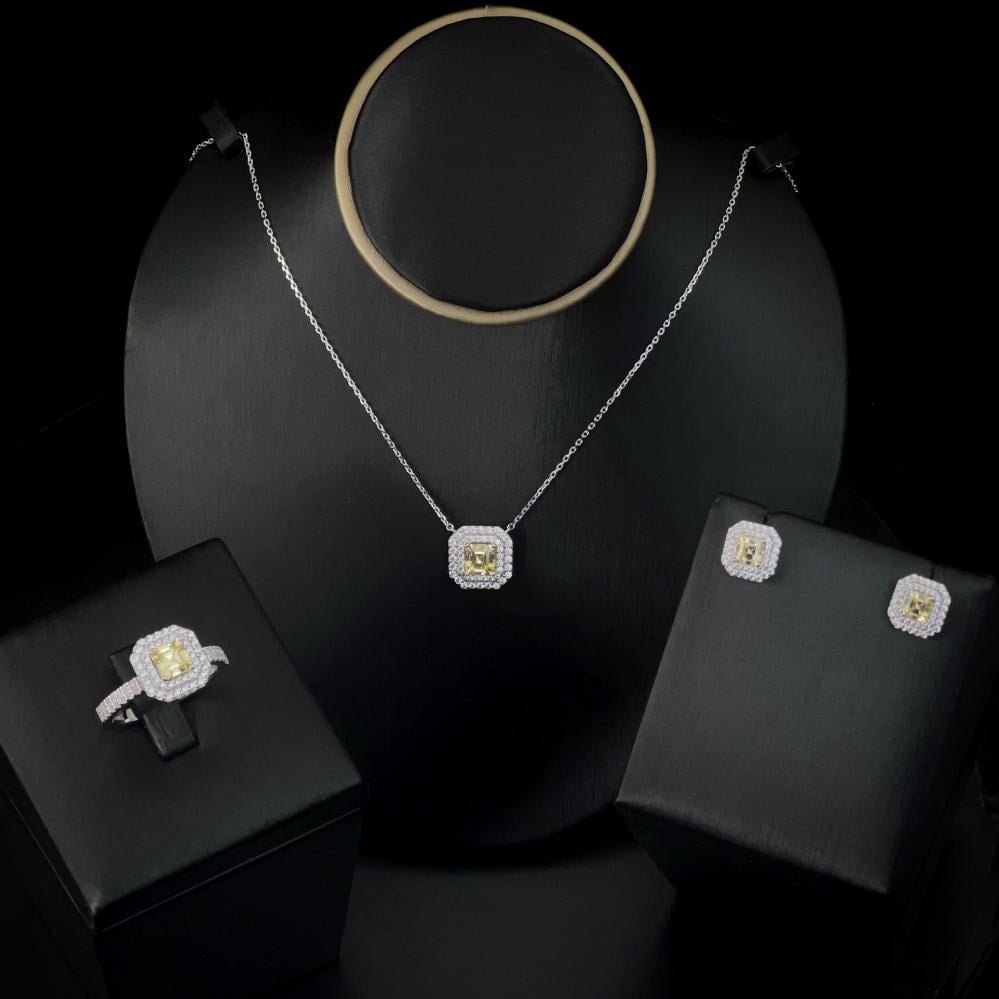 طقم ٣ قطع بالزركون الاصفر فضي من رامس